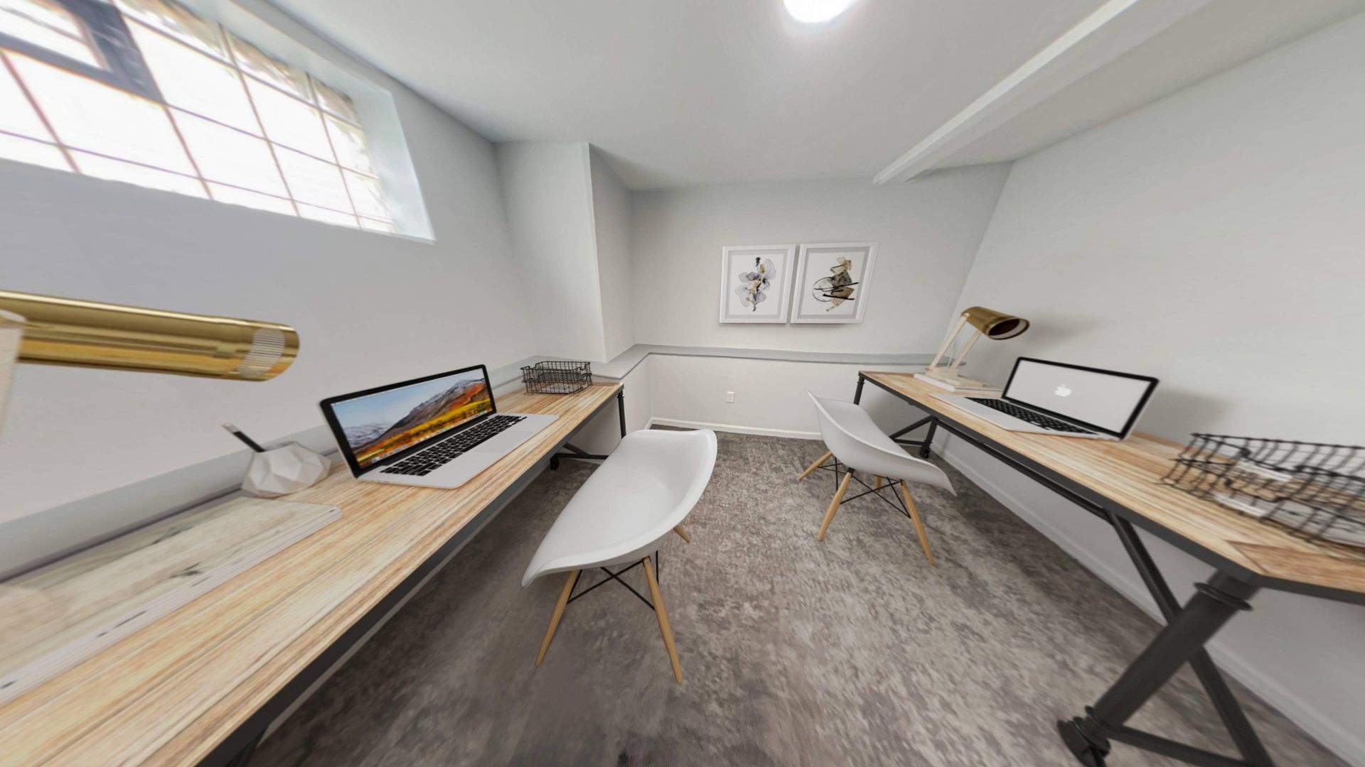 This private downstairs unit features a unique glass block window, allowing for abundant natural light while maintaining your privacy—creating the perfect environment for productivity and focus.
